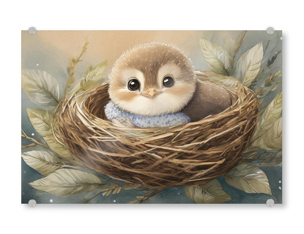 Acrylglasbild "Kleines Nesthocker Küken" artboxONE - Für Kinder,Tiere - Vogel,Babyzimmer,Baby,Nest,Natur,Geborgenheit,Kuckuck,Küken