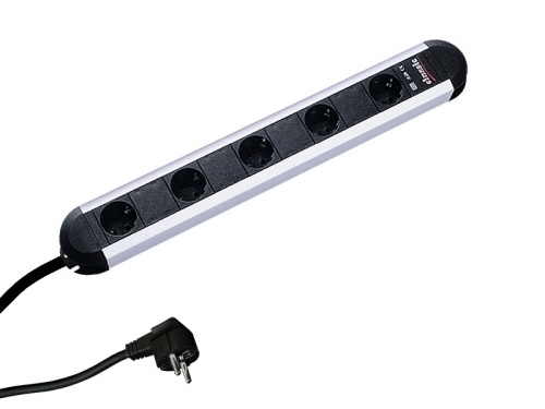 Bachmann Steckdosenleiste PRIMO ALU, 6-fach, schwarz, 2,0m, ohne Schalter