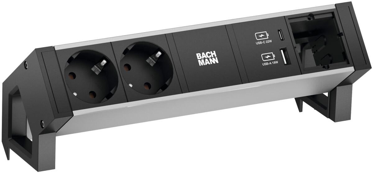 Bachmann 937.304 Steckdosenleiste, 2-fach, 1x USB A/C, 1xCustom Modul leer