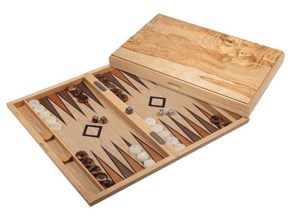 Elegantes Backgammon aus Naturmaser mit Perlmutt-Akzenten
