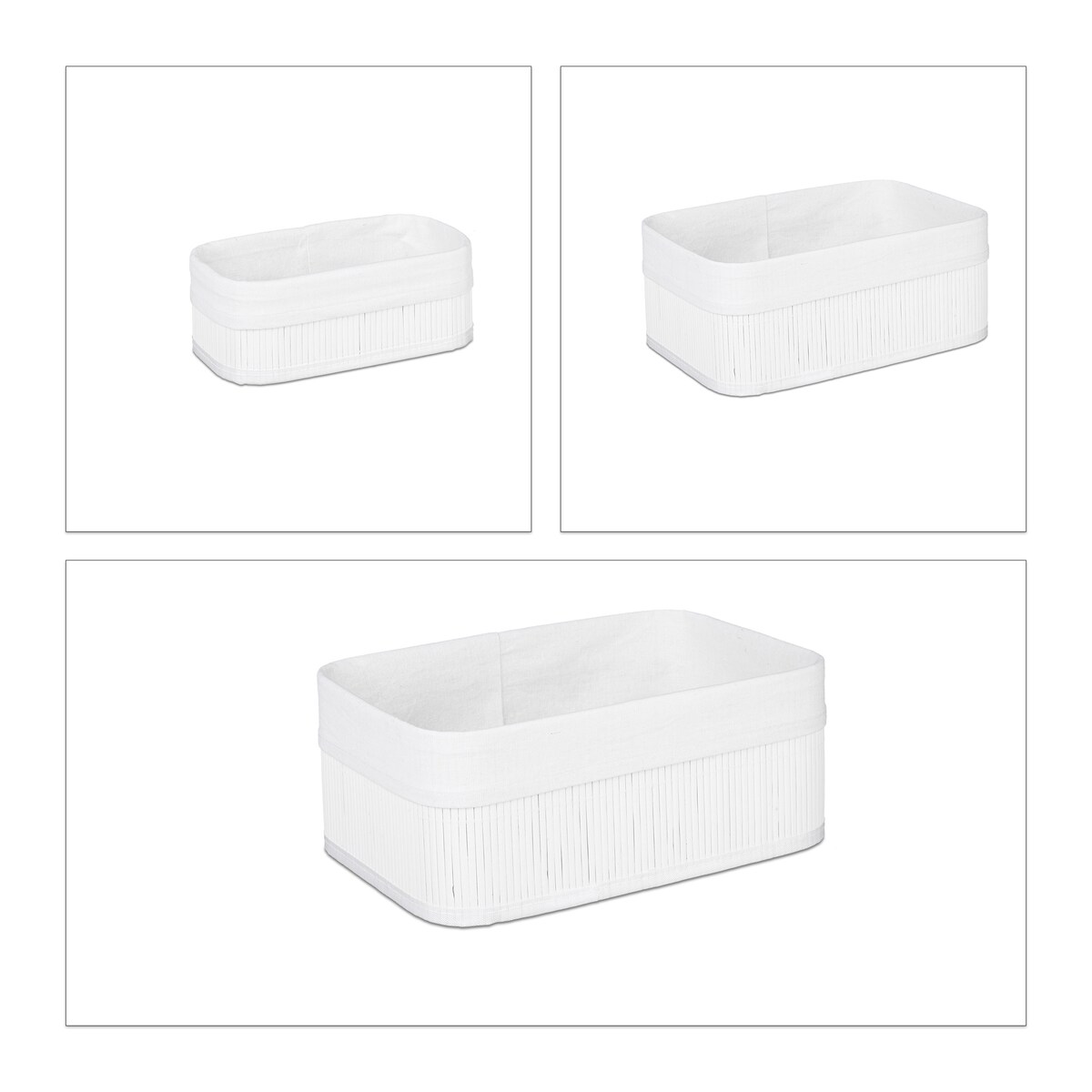 Relaxdays Aufbewahrungskorb 3er Set, Stoffbezug, Bambus, rechteckig, Bad, Accessoires, Spielzeug, Allzweckkorb, weiß