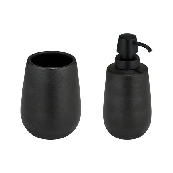 bremermann Bad-Accessoires Set SAVONA 2tlg. mit Soft-Touch Oberfläche, 1x Seifenspender, 1x Becher, Kunststoff schwarz