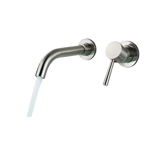 KLARWERK NAVIS | Badarmatur Wandmontage 2-teile Silber gebürstet | Schlichte Edelstahl Mischbatterie Wandarmatur Bad |Hotel Gastro Wasserhahn
