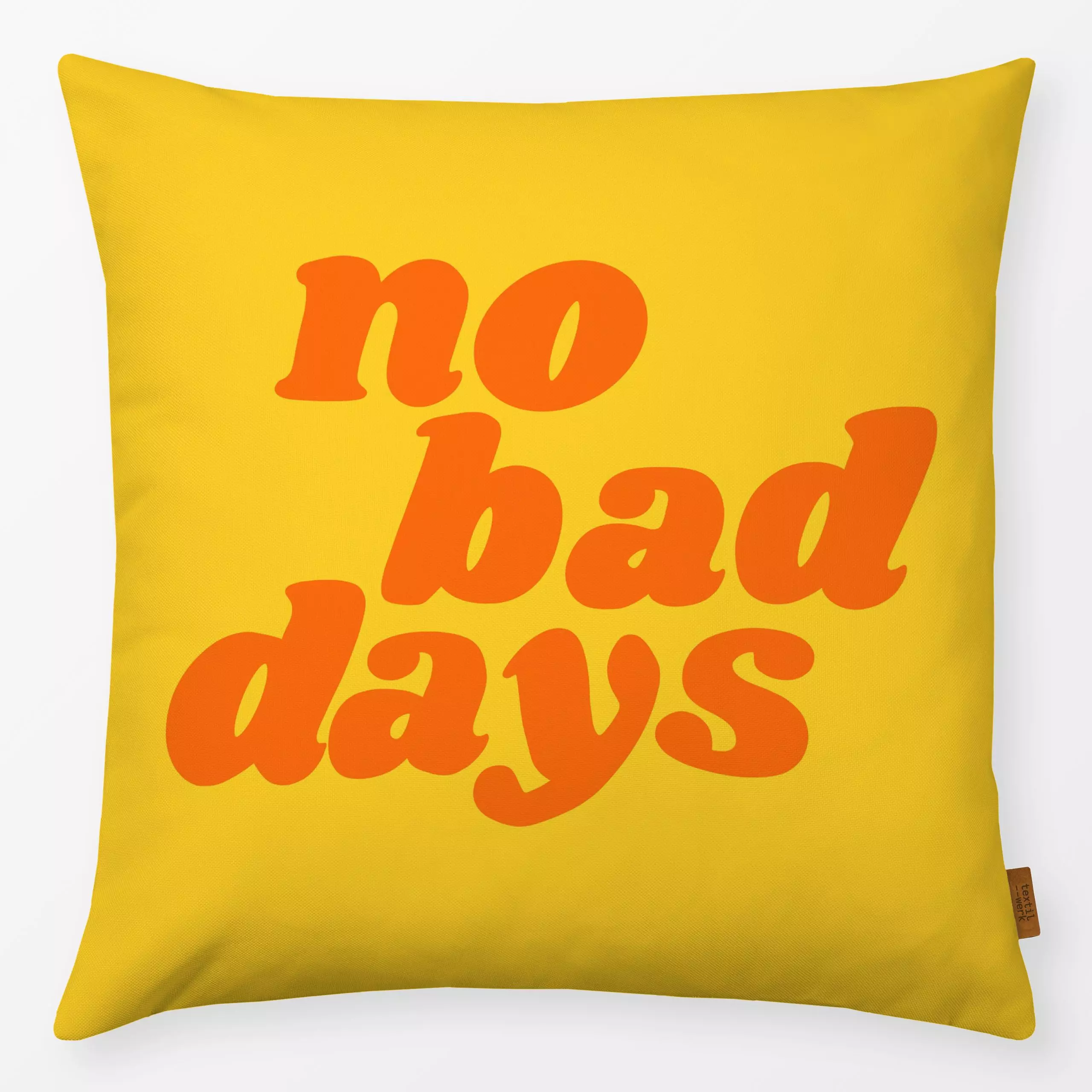 Kissen no bad days - Sommer, Sprüche & Schriftzüge - von „textilwerk"; Illustration, Orange, Sommer, trend, bunt, gelb, gesc...