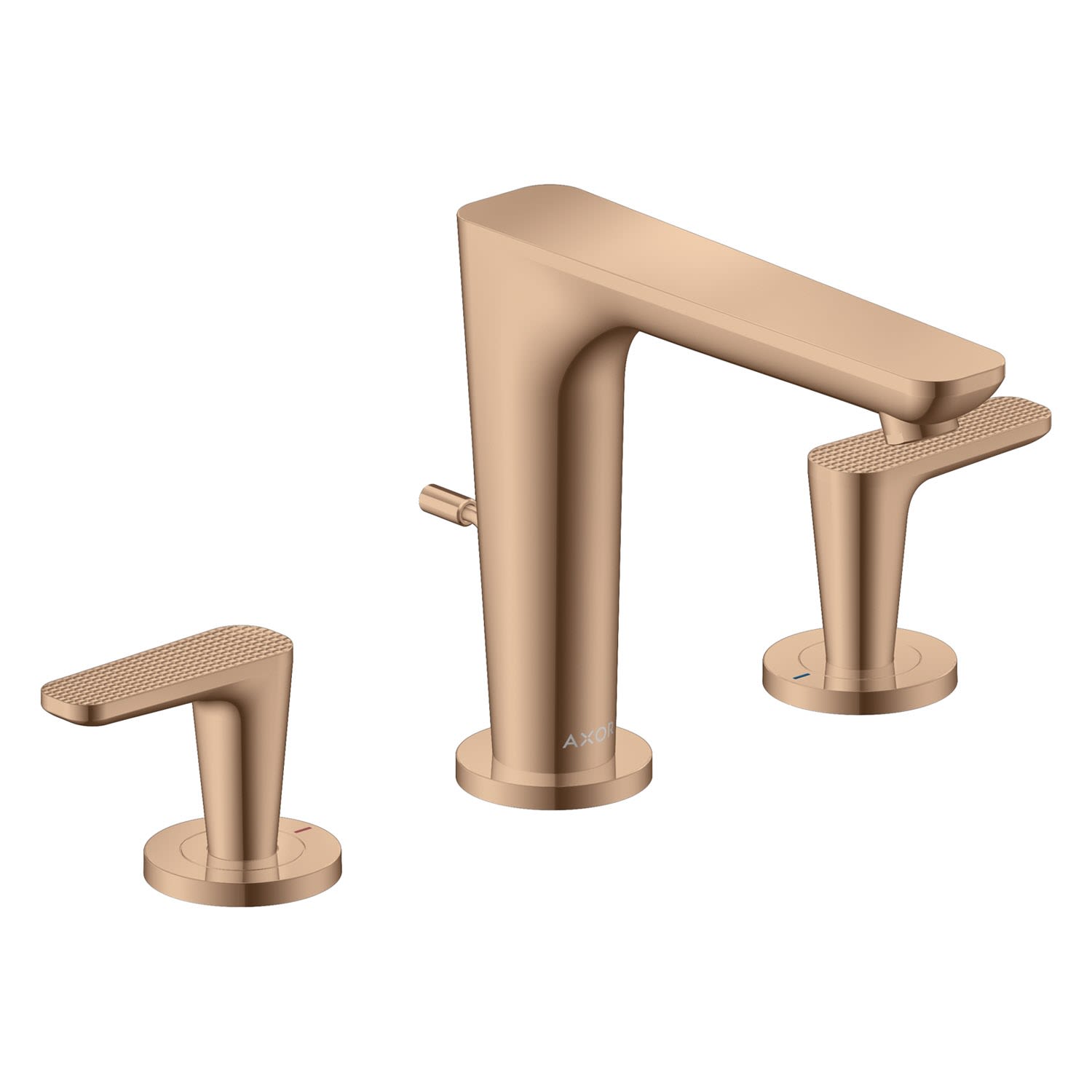 AXOR Citterio C 3-Loch Waschtischarmatur 125 mit Zugstangen-Ablaufgarnitur - Cubic cut, Badarmaturen, polished red gold