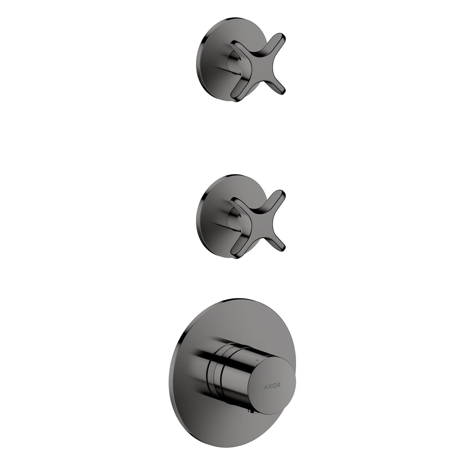 AXOR One Thermostatmodul Unterputz für 2 Verbraucher mit Kreuzgriffen, Rosetten rund, Badarmaturen, polished black chrome