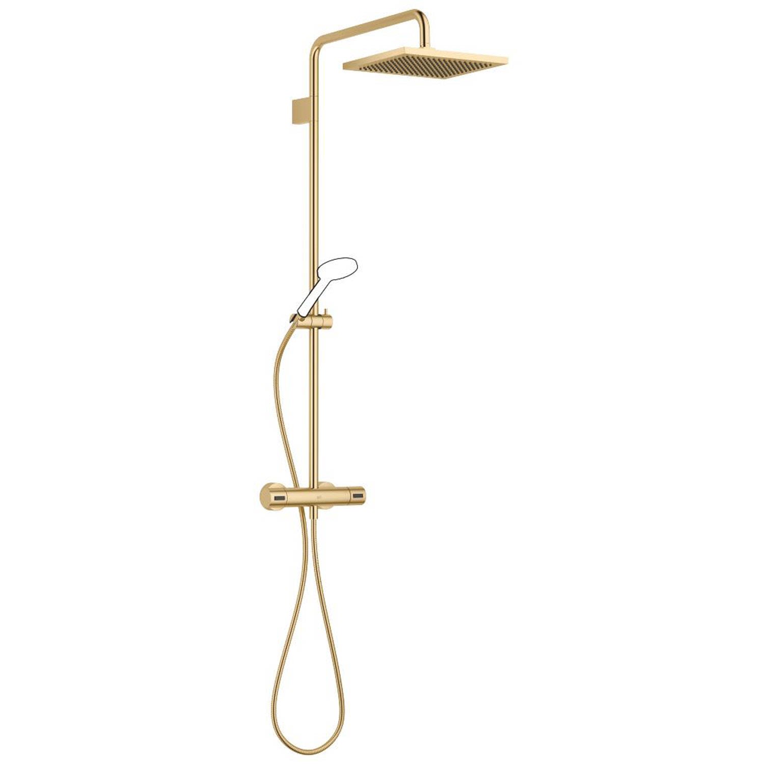 Dornbracht Shower Pipe mit Brause-Thermostat, eckig 34459980-00, Badarmaturen, messing gebürstet