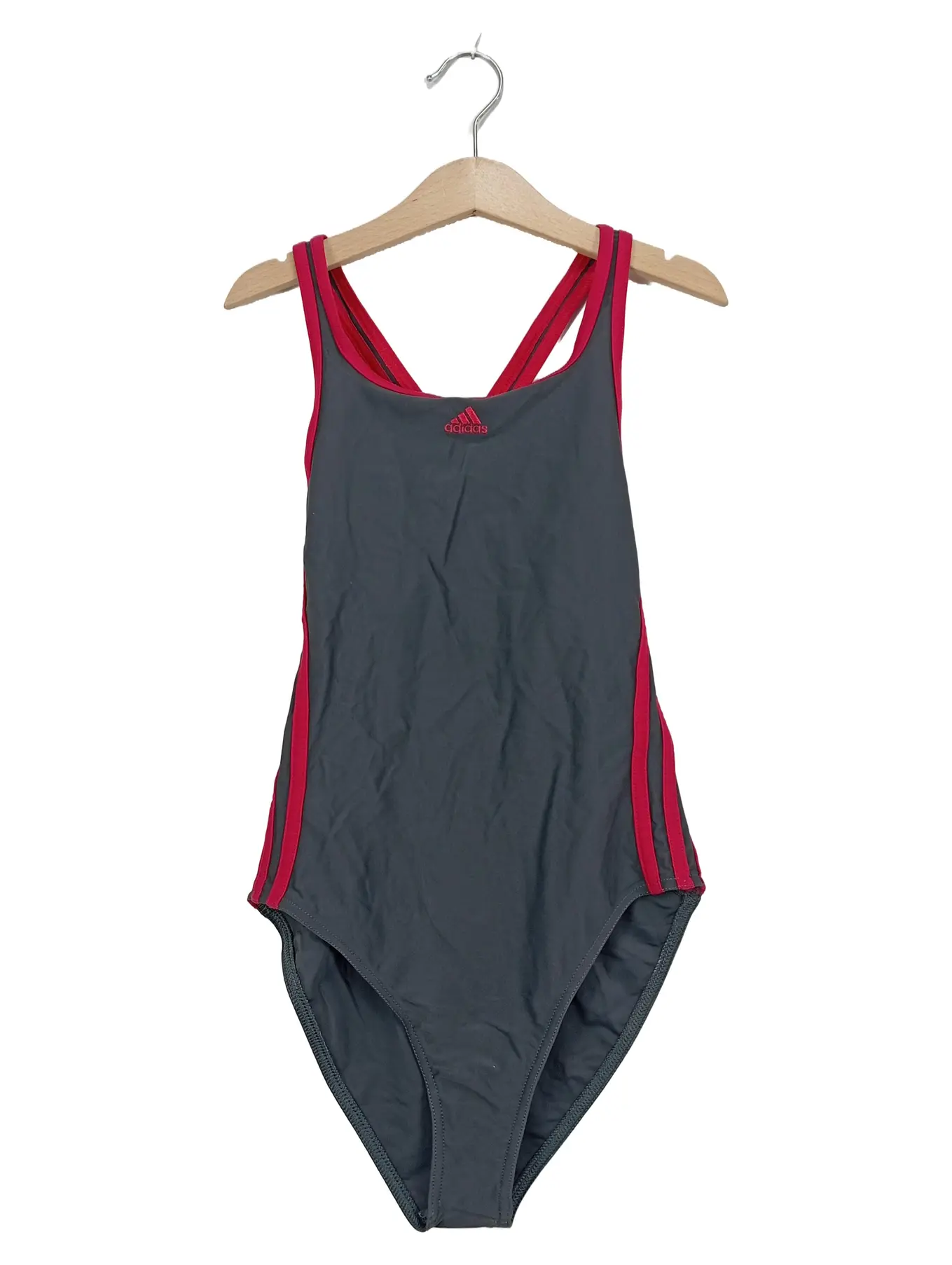 ADIDAS Mädchen Badeanzug Gr. 152 Grau Sportlich 3-Streifen Polyamid