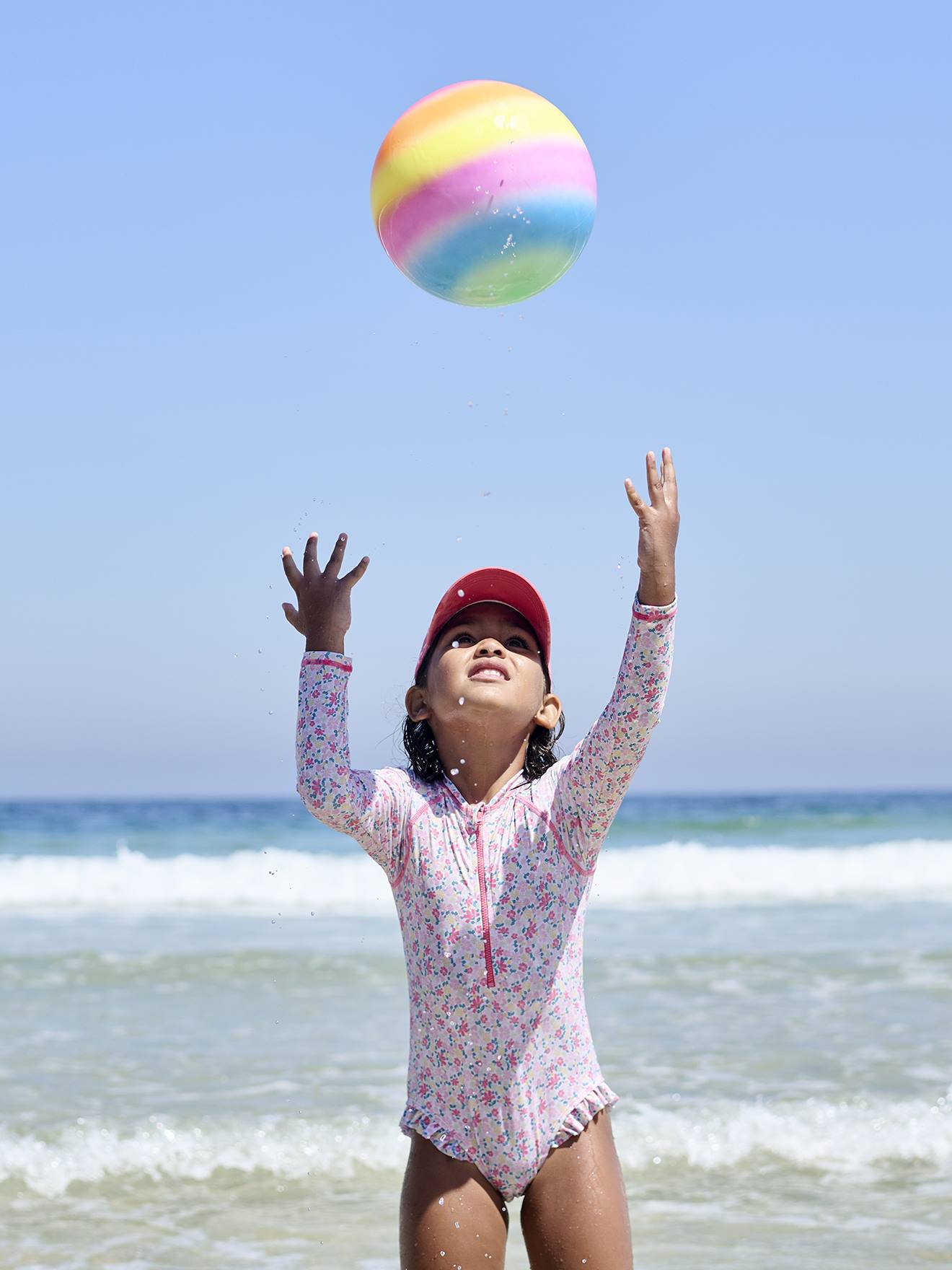 Langärmeliger Mädchen Badeanzug, Blumenprint rosa Gr. 92/98 von vertbaudet