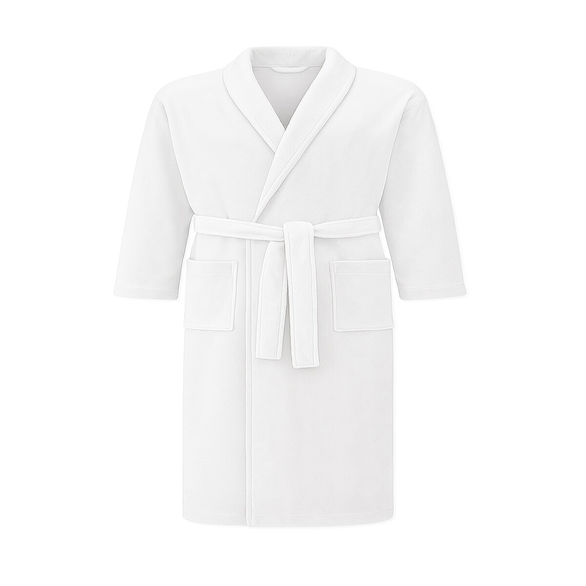 Bademantel mit Gürtel Weiss Größe M Velours Schalkragen unisex