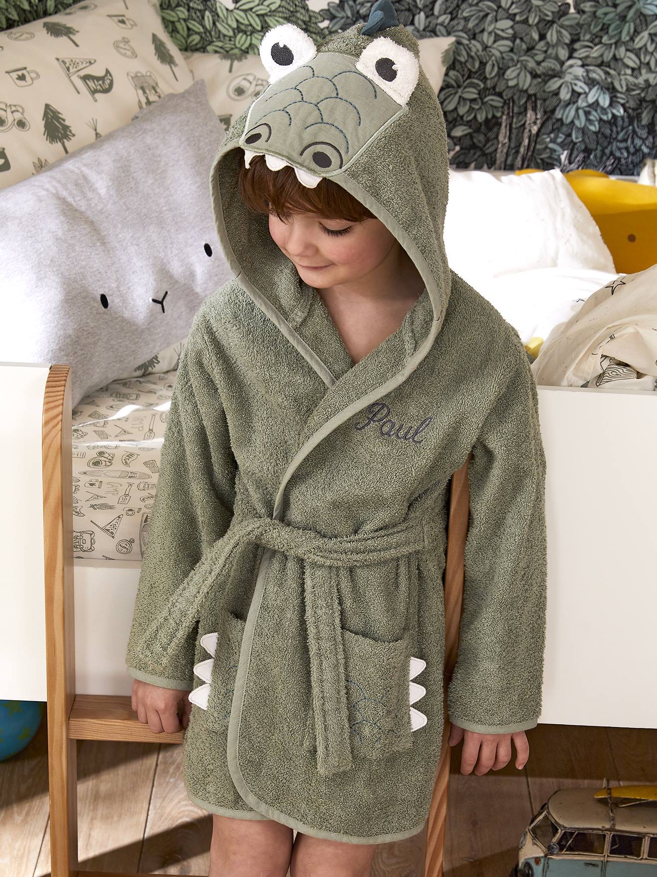 Kinder Bademantel TREK Krokodil, personalisierbar grün Gr. 140 von vertbaudet