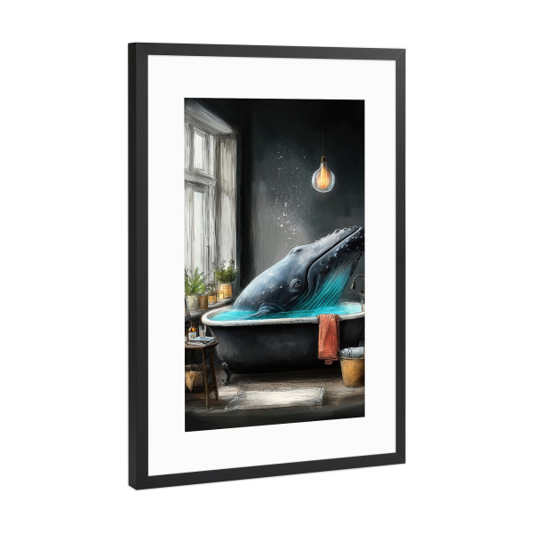 Poster mit Rahmen Schwarz (Metallic) "Wal nimmt ein Bad A" artboxONE - Tiere,Lustig - Wal,Bad,Badewanne,Badezimmer,Tier,Entspannen,Spa
