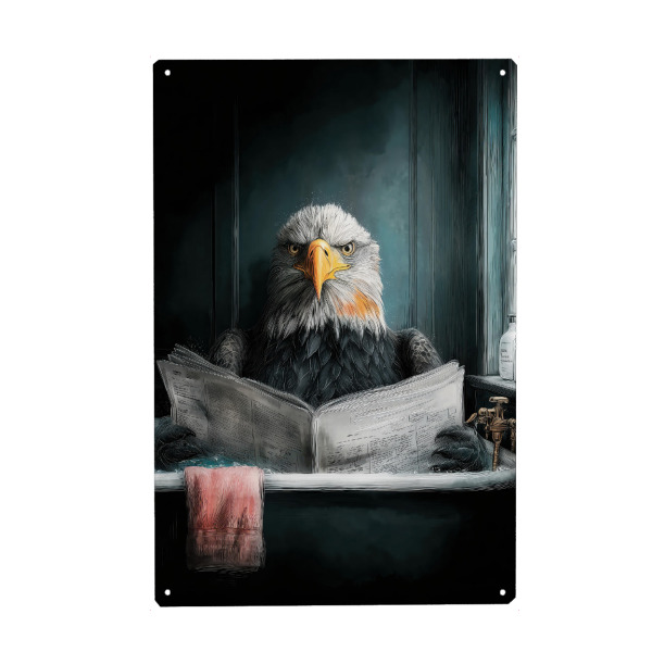 Metall Poster "Adler nimmt ein Bad A" artboxONE - Natur,Lustig - Adler,Bad,Badewanne,Badezimmer,Tier,Entspannen,Spa - Blechschild