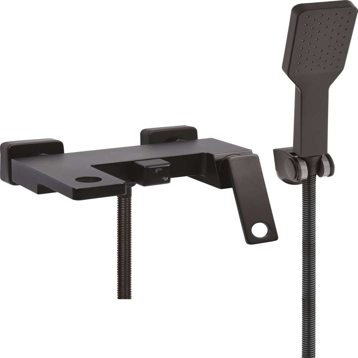 Badewannenarmatur, Wandmontage, Handbrause, schwarz