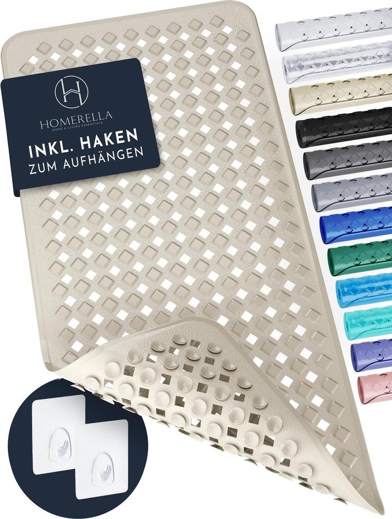 Homerella Badewannenmatte rutschfest Hautsensitiv 88x39cm mit AUFHÄNGUNG | Antirutschmatte Badewanne BPA frei | Duschmatte maschinenwaschbar Badem...