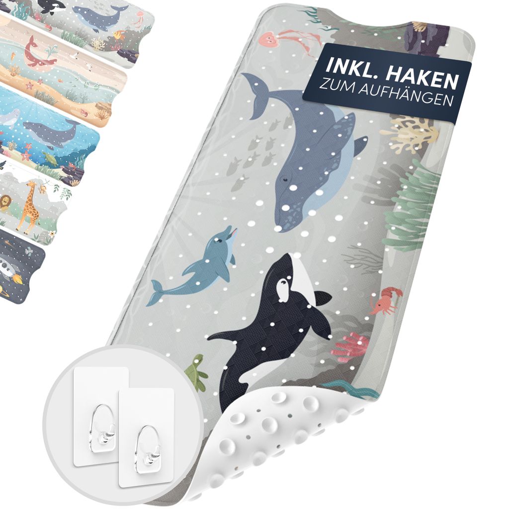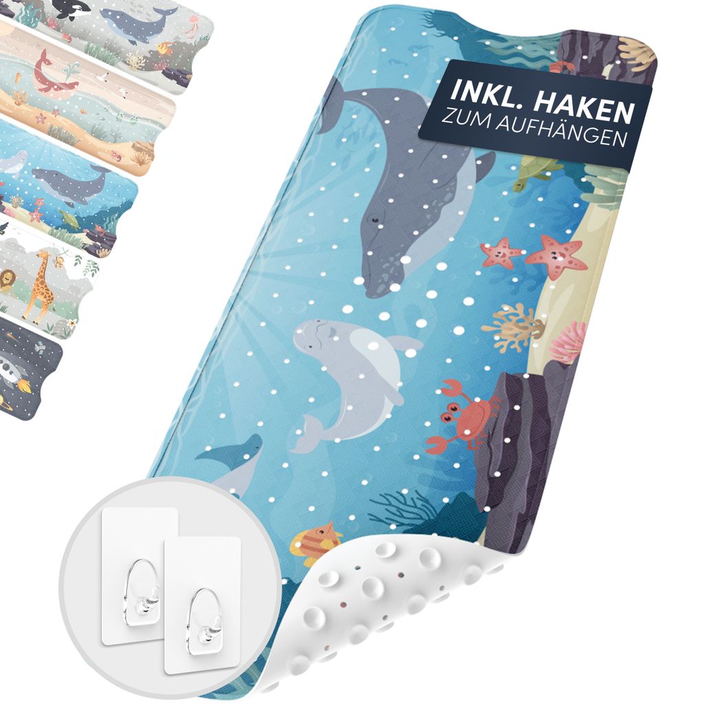 avakido Badewannenmatte Kinder rutschfest - Inklusive 2 Haken, Meeresfreunde