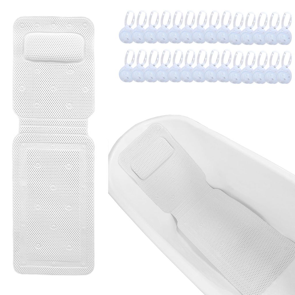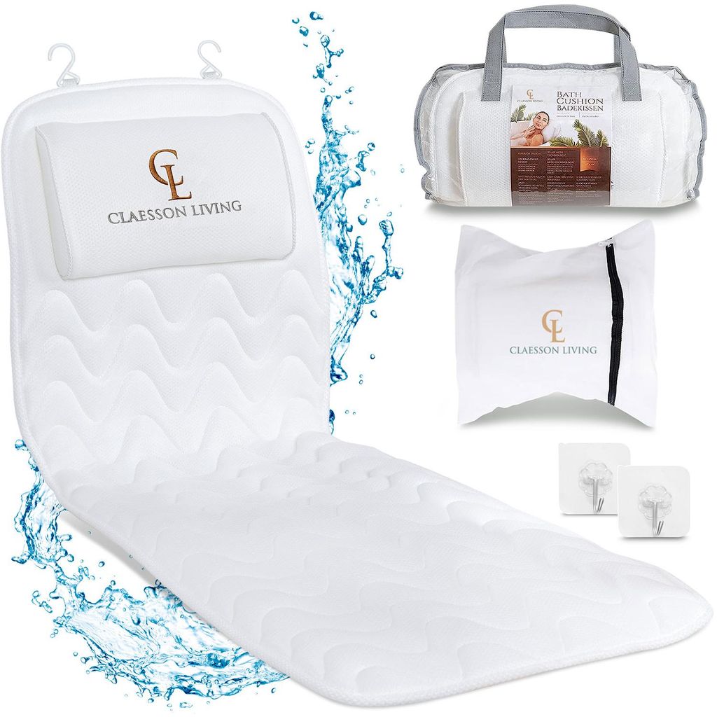Badewannenkissen Ganzkörper Badekissen (125x43cm) - Badewannenmatte mit Kopfstütze unterstützt Nacken, Rücken und Beine - Mit Wasch- und Reiseb...