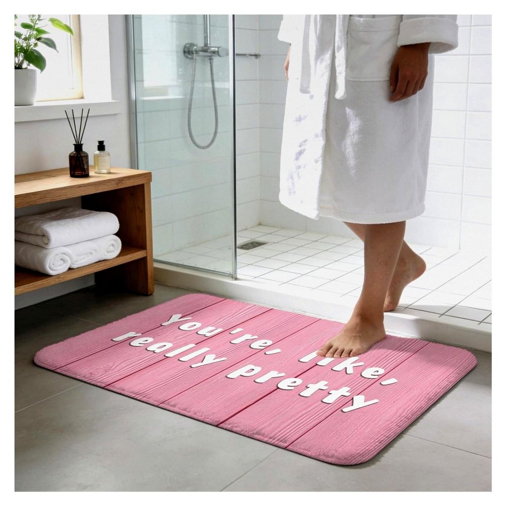 Witzige Zitate auf rosa Holz Badezimmerteppich 60 x 40 cm wasserabsorbierend weich rutschfest Badewannenmatte maschinenwaschbar Matten für Duschen...