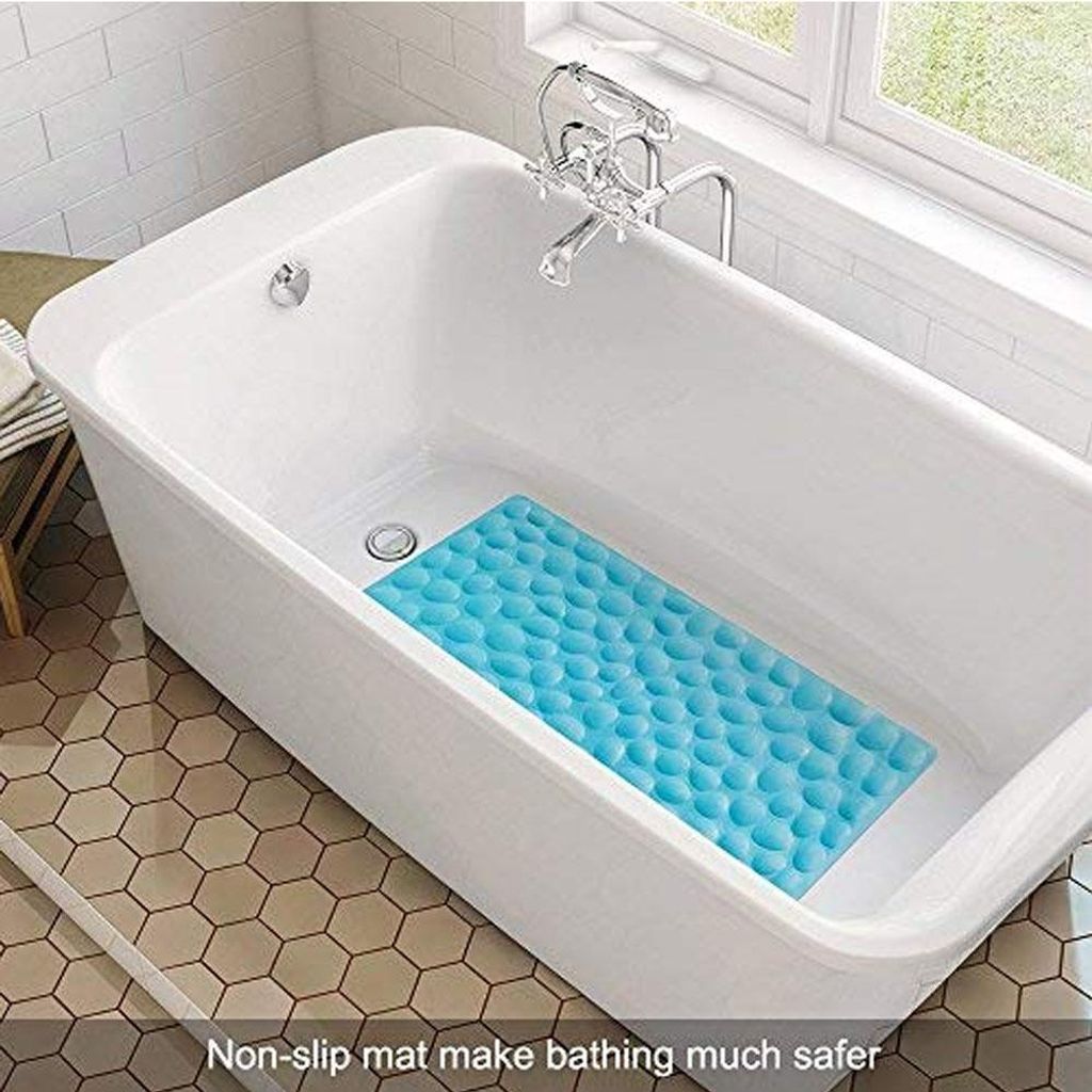 Rutschfeste Badewannenmatte mit Saugnäpfen, weich, komfortabel, geruchlos, blaue TPE-Badewannenmatte für Badezimmer, Badewanne, Bidet und Küche