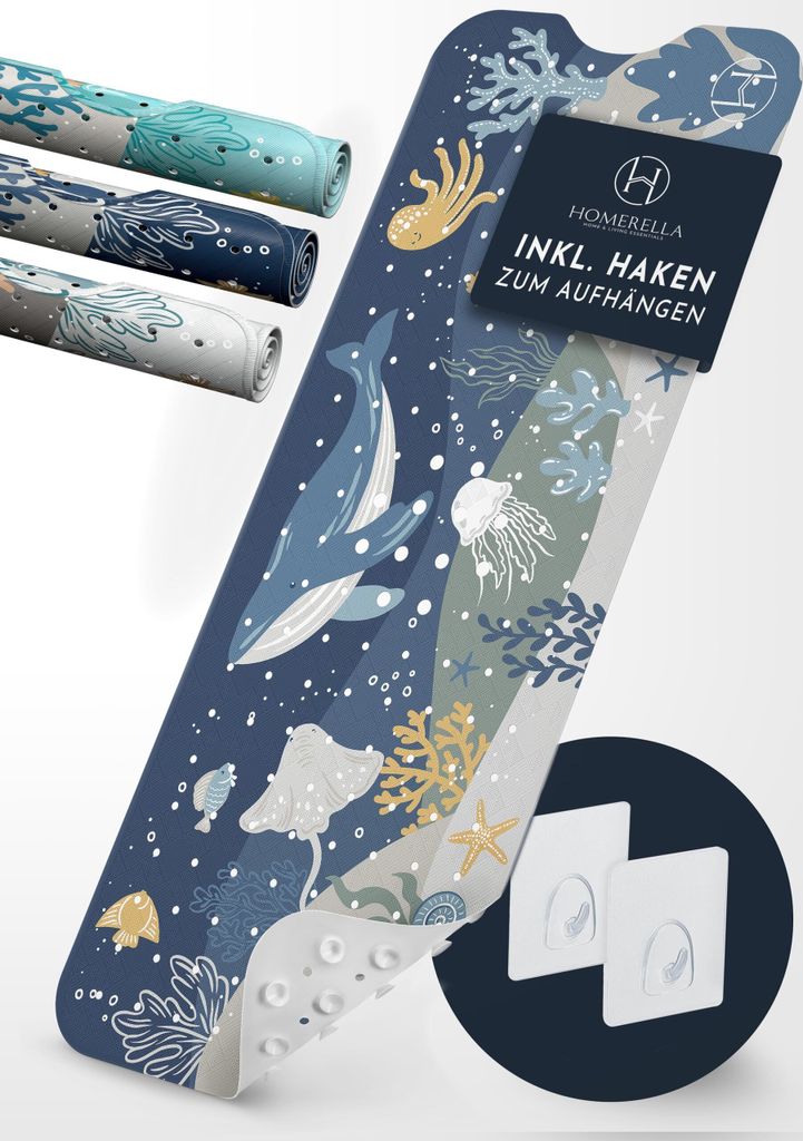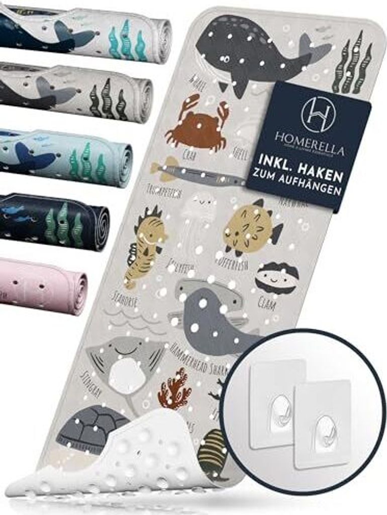 homerellaKinder Badewannenmatte rutschfest 100x40cm, INKL. Haken, rutschfeste Badematte BPA frei, Duschmatte rutschfest, Antirutschmatte Badewanne ...