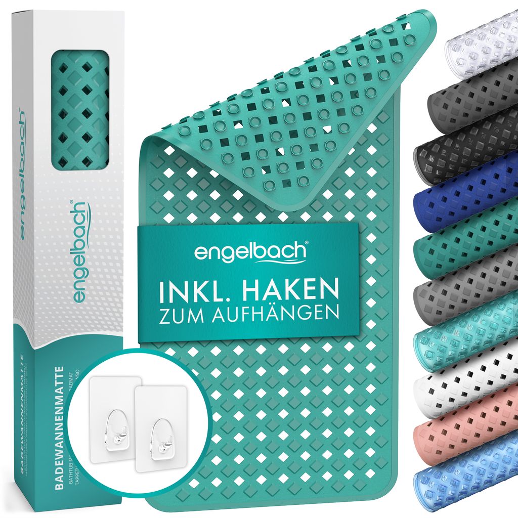 Engelbach Badewannenmatte 88x40cm rutschfest mit Aufhängung - Antirutschmatte Badewanne - 100 % BPA frei - maschinenwaschbar - Grün
