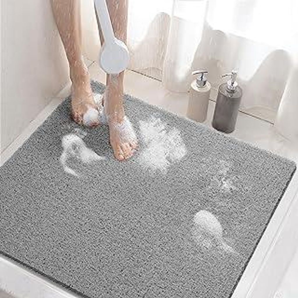 Quadratisch duschmatte rutschfest Anti Schimmel, 43 x 75 cm badewannenmatte antirutsch, Maschinenwaschbar, Grau