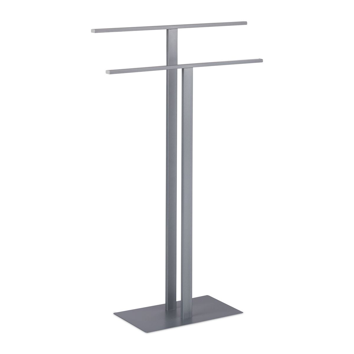Relaxdays Handtuchständer, T-Design, 2 Handtuchstangen, HxBxT: 82 x 50 x 19 cm, Badezimmer, Schlafzimmer, Eisen, grau