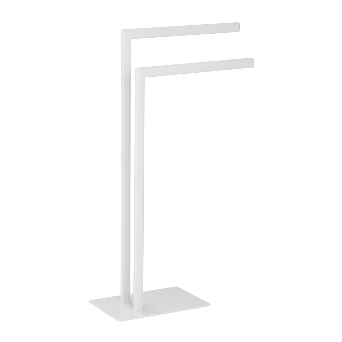 Relaxdays Handtuchständer freistehend, 2 Stangen, Badezimmer, Stahl, HxBxT: 81 x 48 x 20 cm, Bad Handtuchhalter, weiß