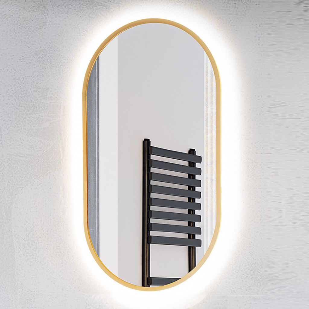 Badezimmer LED Spiegel, oval, in gold MIRROR-56, B/H/T ca. 50/90/3,5 cm