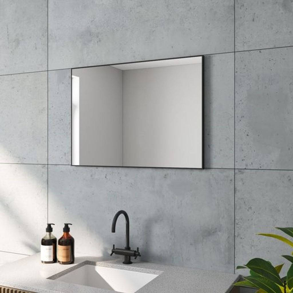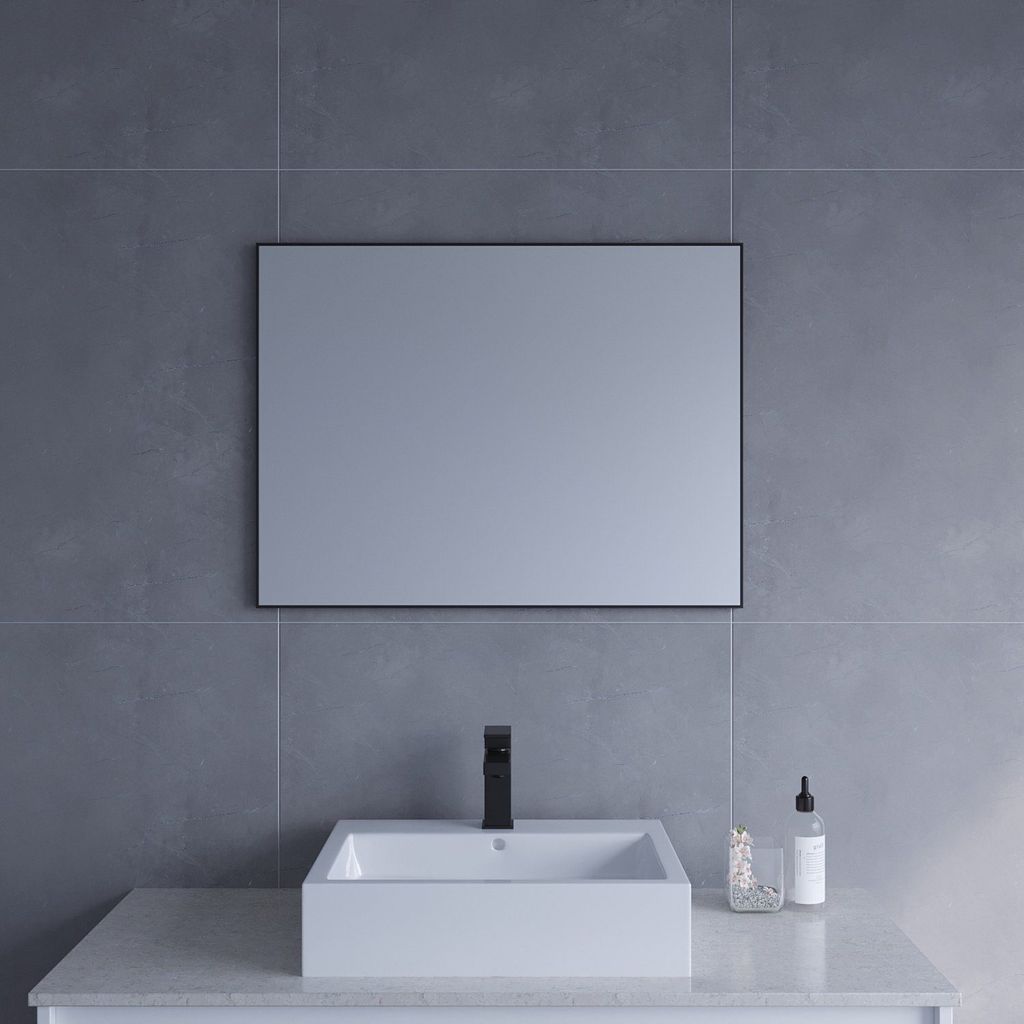 Spiegel Wandspiegel mit Schwarzem Alurahmen Badezimmer 80x60 cm,vertikal oder horizontal montierbar,Slim-Design