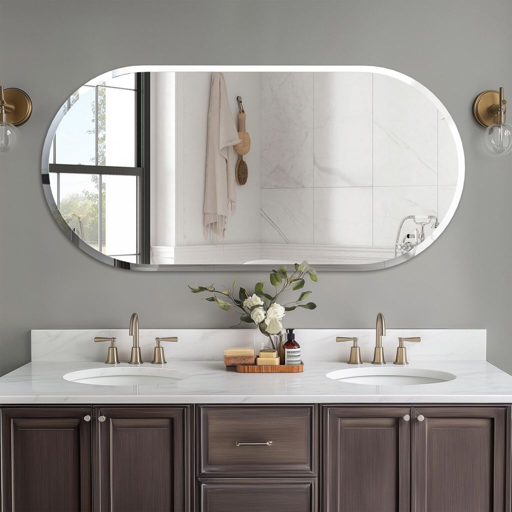 Ovaler Wandspiegel mit abgeschrägten Kanten 70 x 40 cm – Moderner Badspiegel – Rahmenloser Design Spiegel für Badezimmer, Flur & Wohnzimmer