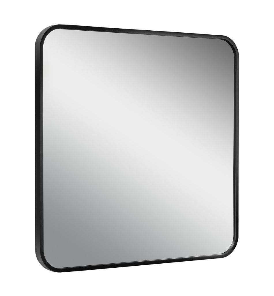 Quadratischer Spiegel mit abgerundeten Ecken, 60 x 60 cm, schwarzer Rahmen, für Badezimmer und Wohnzimmer, modernes Dekorativ