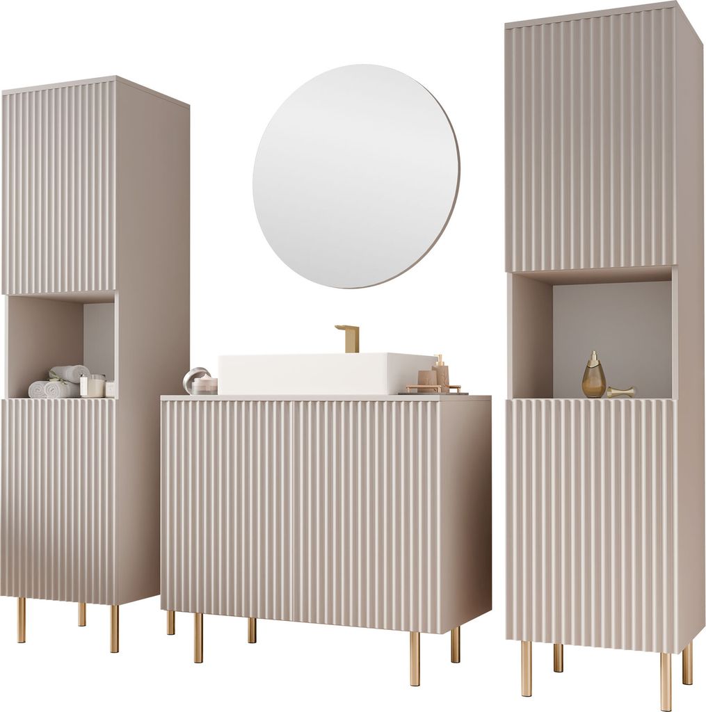 MIRJAN24 Badmöbel-Set Nubia VI, Badezimmer-Set mit Spiegel (Farbe: Cashmere, Mit Siphon, Mit Waschbecken)