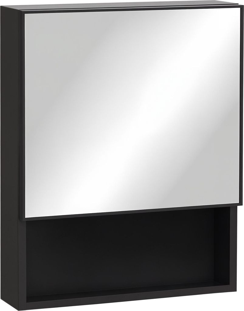 Spiegelschrank Bad mit 2 Glasböden und offenem Regal, Stahlgehäuse schwarz, 46x13,5x58 cm, Badezimmer Spiegel Schrank