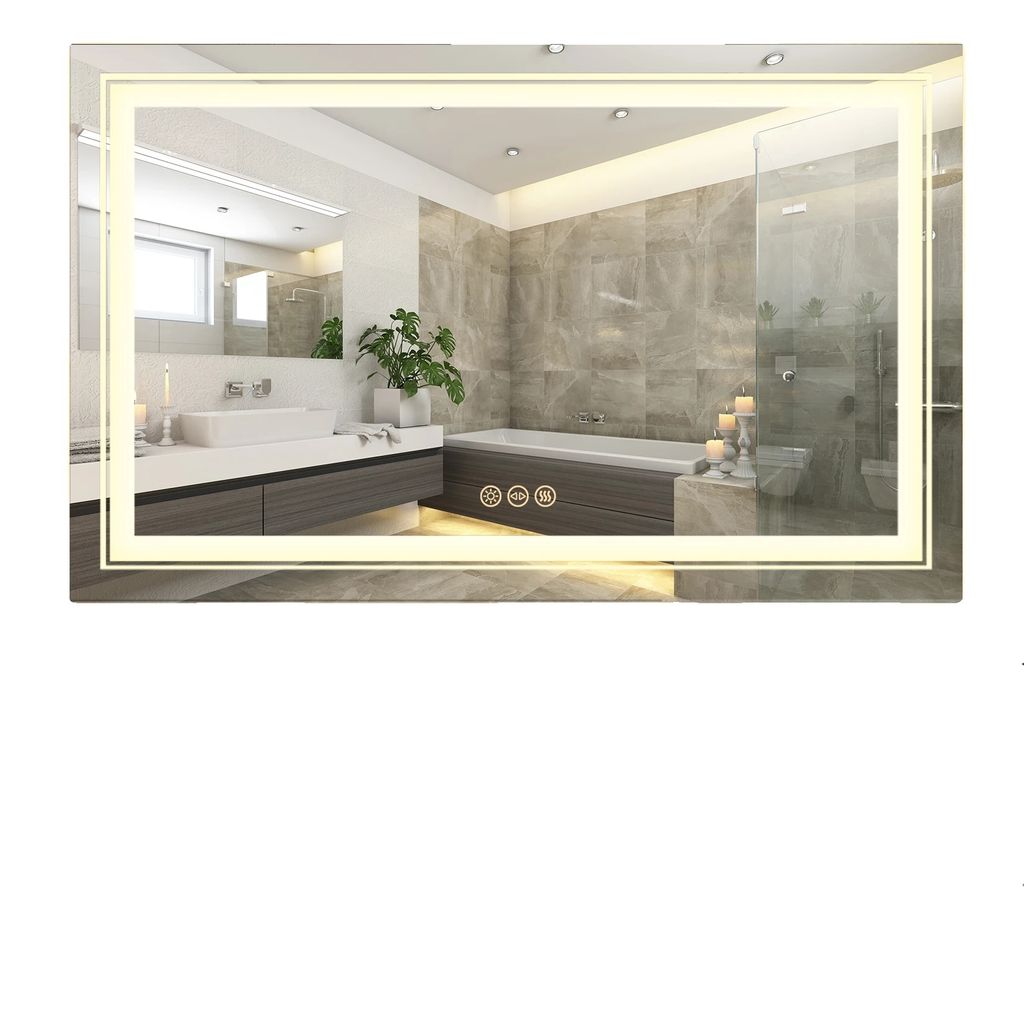 LED Badezimmer Spiegel, Anti-Beschlag-Funktion, Einstellbare Helligkeit, Hellgrau