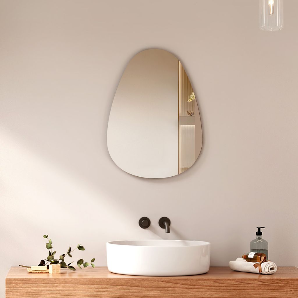 EMKE Ovaler Spiegel, Asymmetrischer Spiegel 45 x 60 cm Badezimmer Spiegel Asymmetrisch Badspiegel, Badezimmerspiegel Wandspiegel