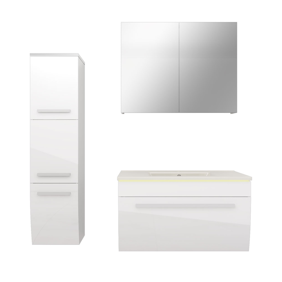 Badmöbel Set in Weiß/Weiß Glanz, Badezimmermöbel set, Badezimmer Set Möbel