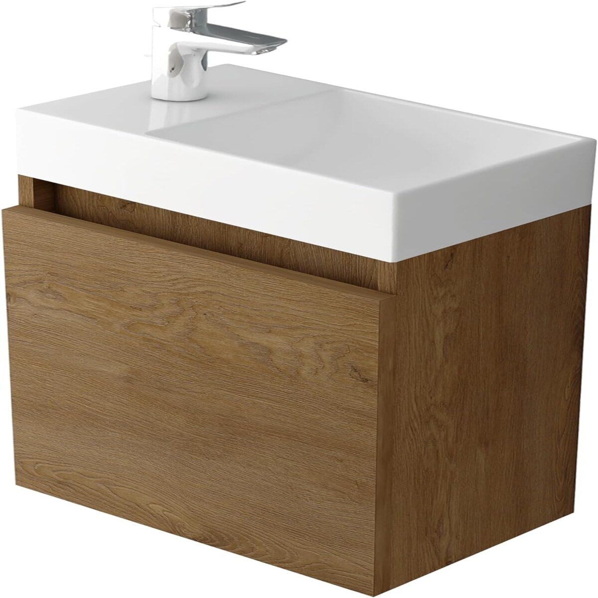 Waschtisch mit Unterschrank, hängend, 60 cm, Keramik Waschbecken, Badezimmermöbel für Gäste-WC, Badmöbel Set, Natur