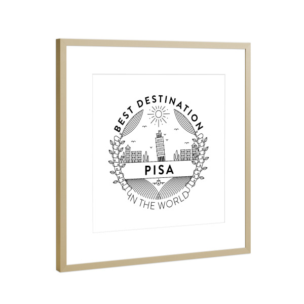 Poster mit Rahmen Gold "Pisa Tower Badge" artboxONE - Städte,Reise