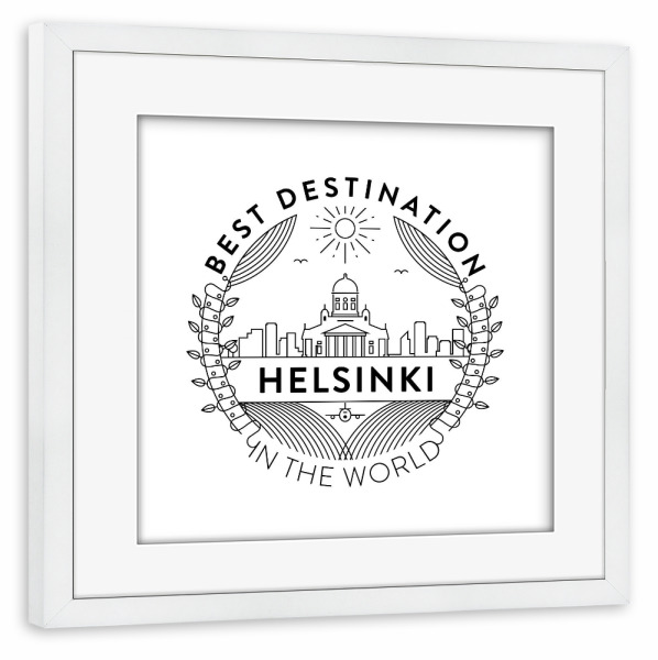 Poster mit Rahmen weiß "Helsinki Badge" artboxONE - Städte,Reise