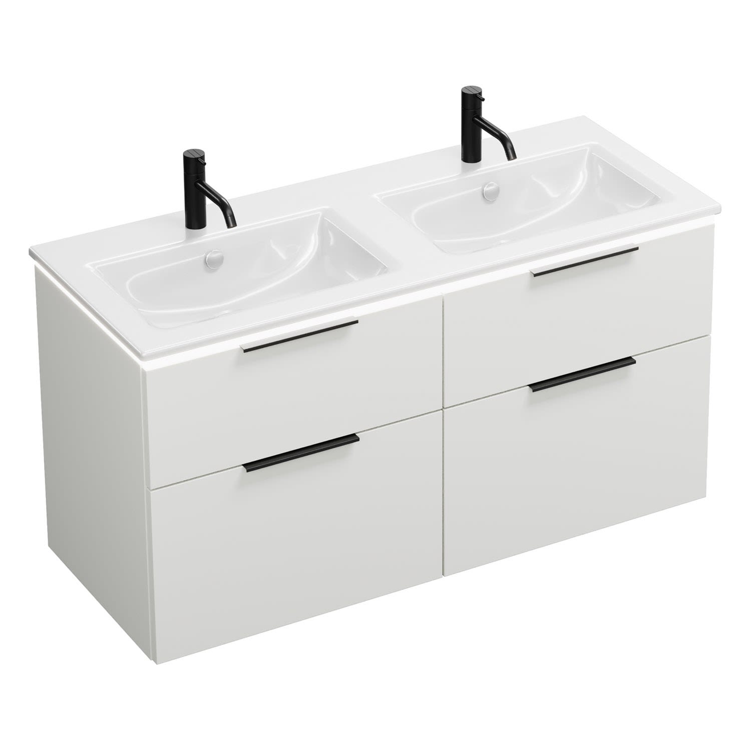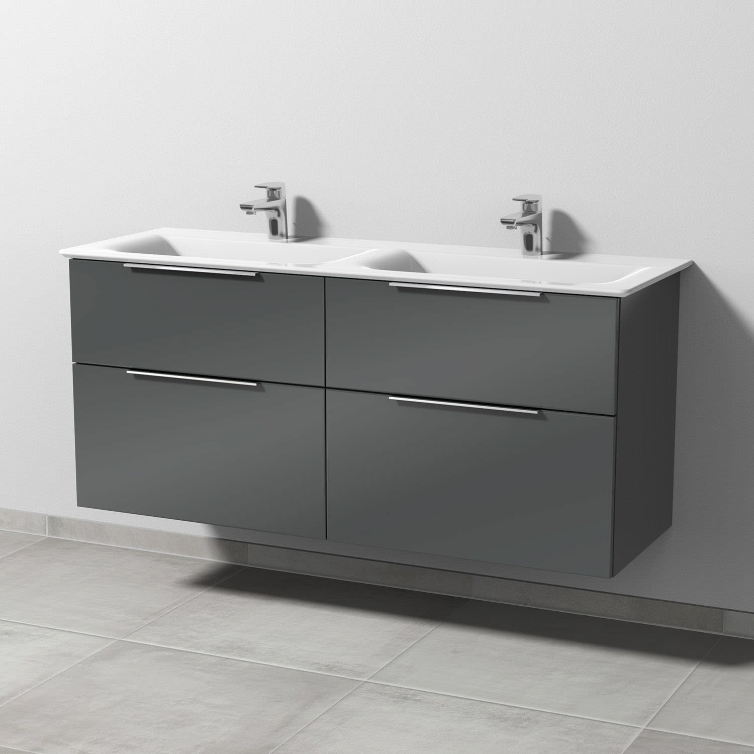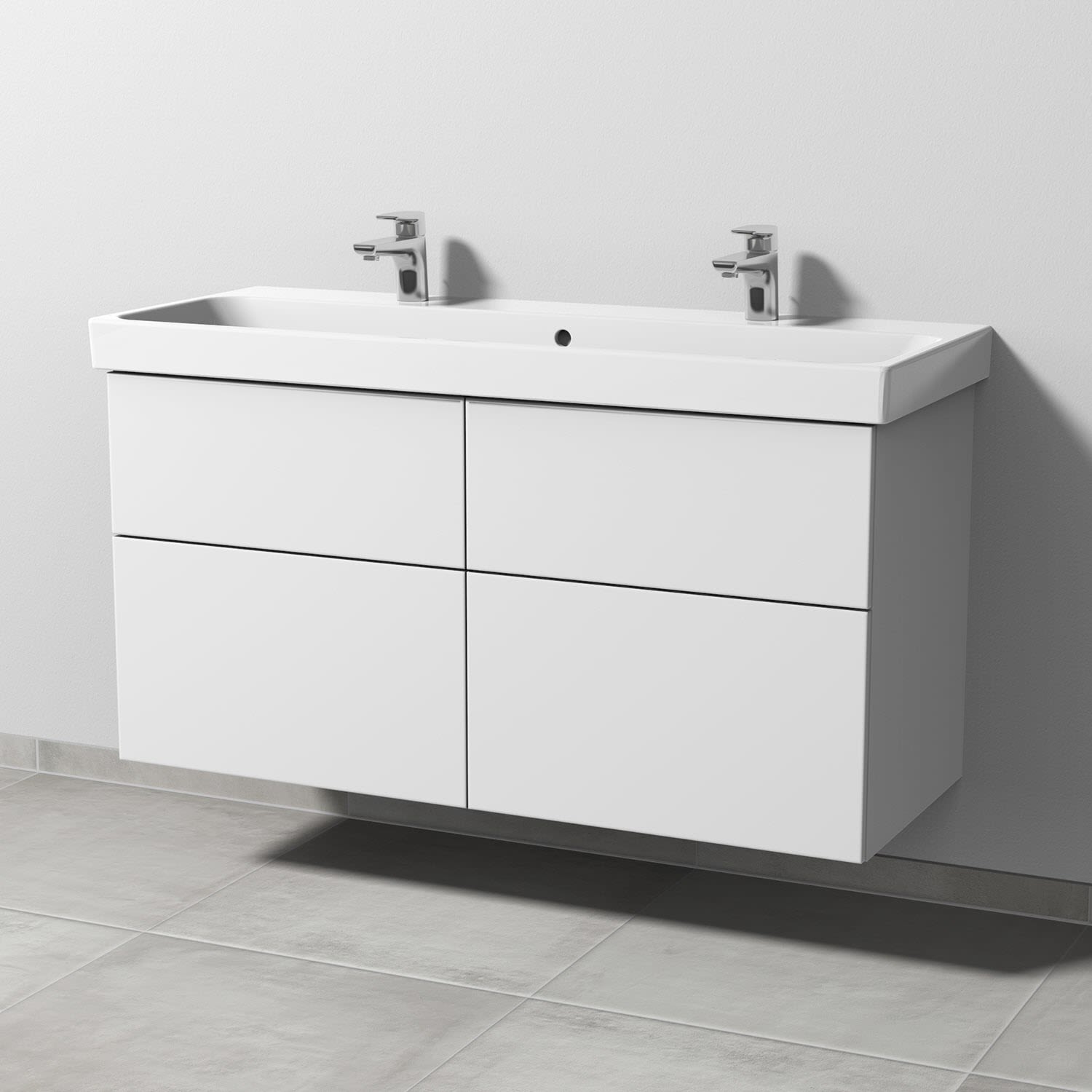 Sanipa 3way Keramik Doppelwaschtisch ProSmart mit Waschtischunterschrank 120 x 47 cm, mit 4 Auszügen, Badmöbel,