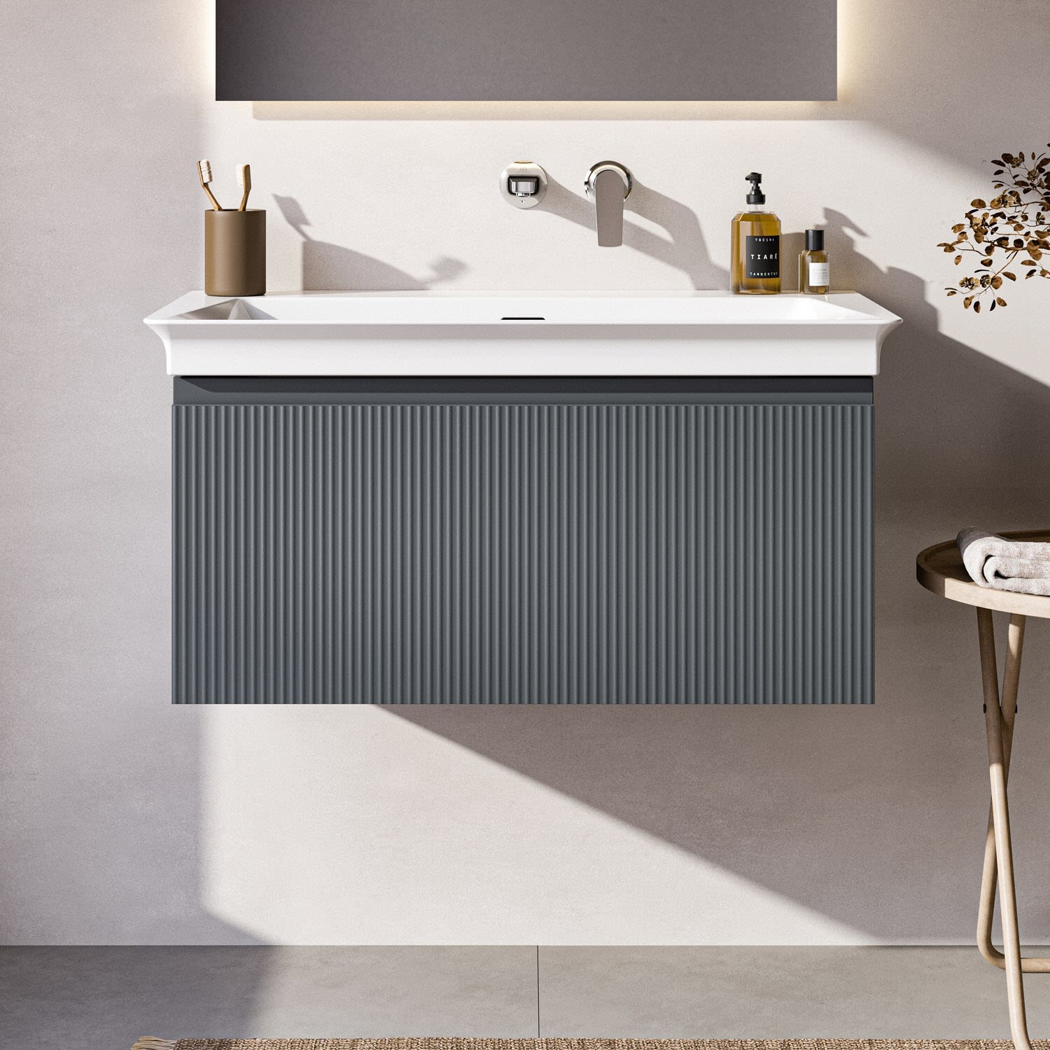 Stand Badmöbel Felini 90 grafit mit drei grifflosen Schubladen
