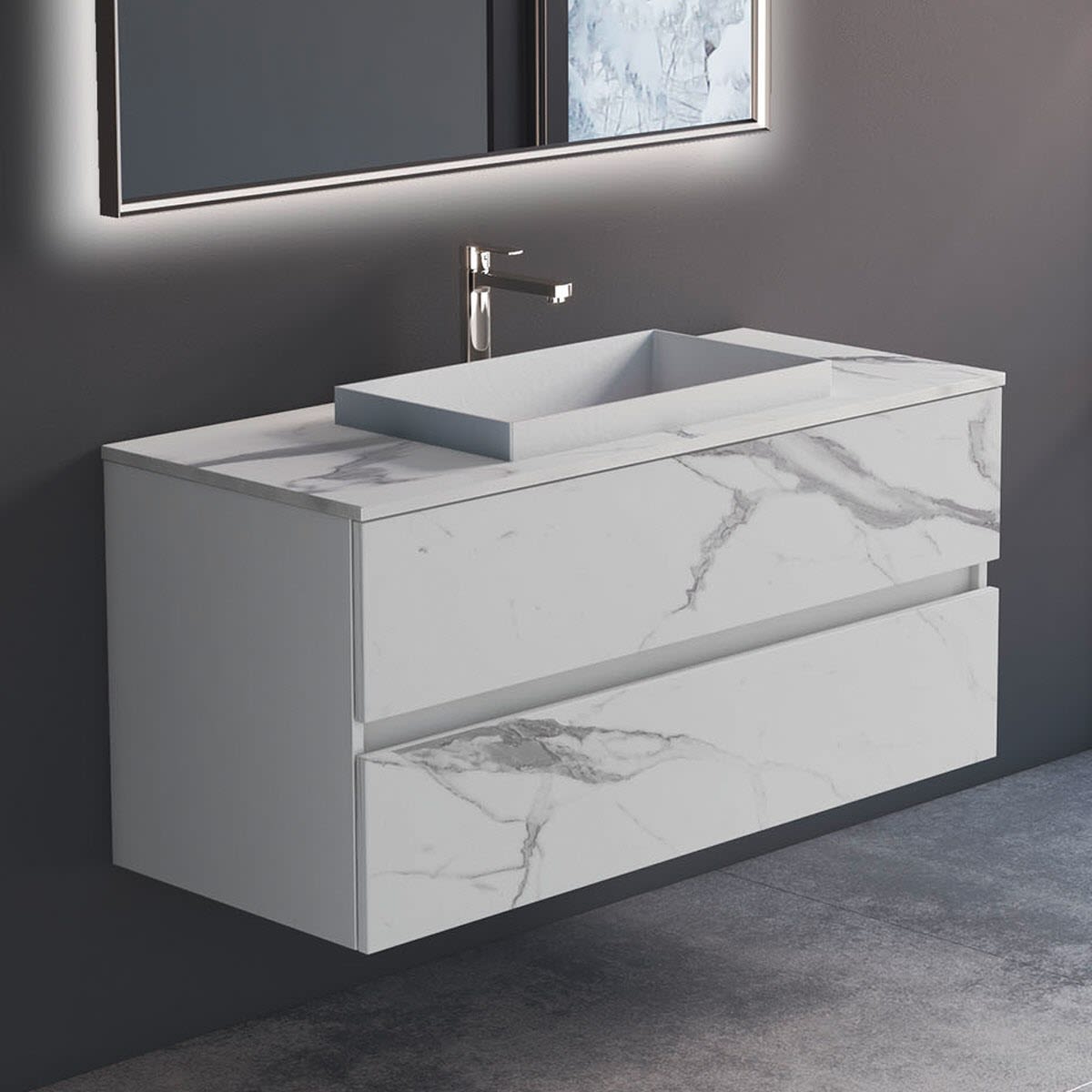 progettobagno Evo Marmi Unterschrank 120 cm mit Waschtischplatte, Hahnlochbohrung und ELY 60 Einbauwaschtisch, Badmöbel,
