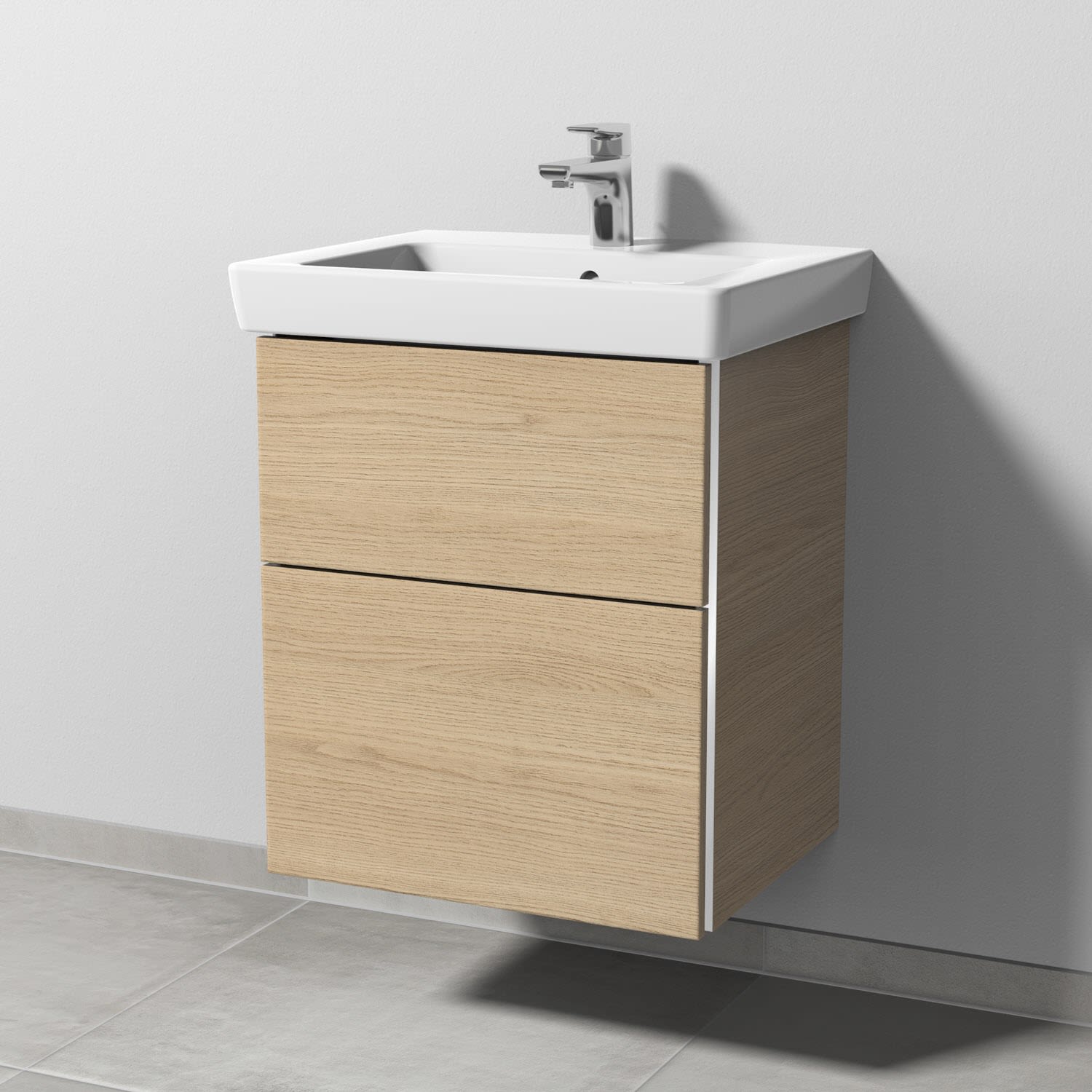 Sanipa 3way Waschtischunterbau für Keramik-Waschtisch Vero Air 50 cm, 2 Auszüge mit Aufsatzgriff, Badmöbel,