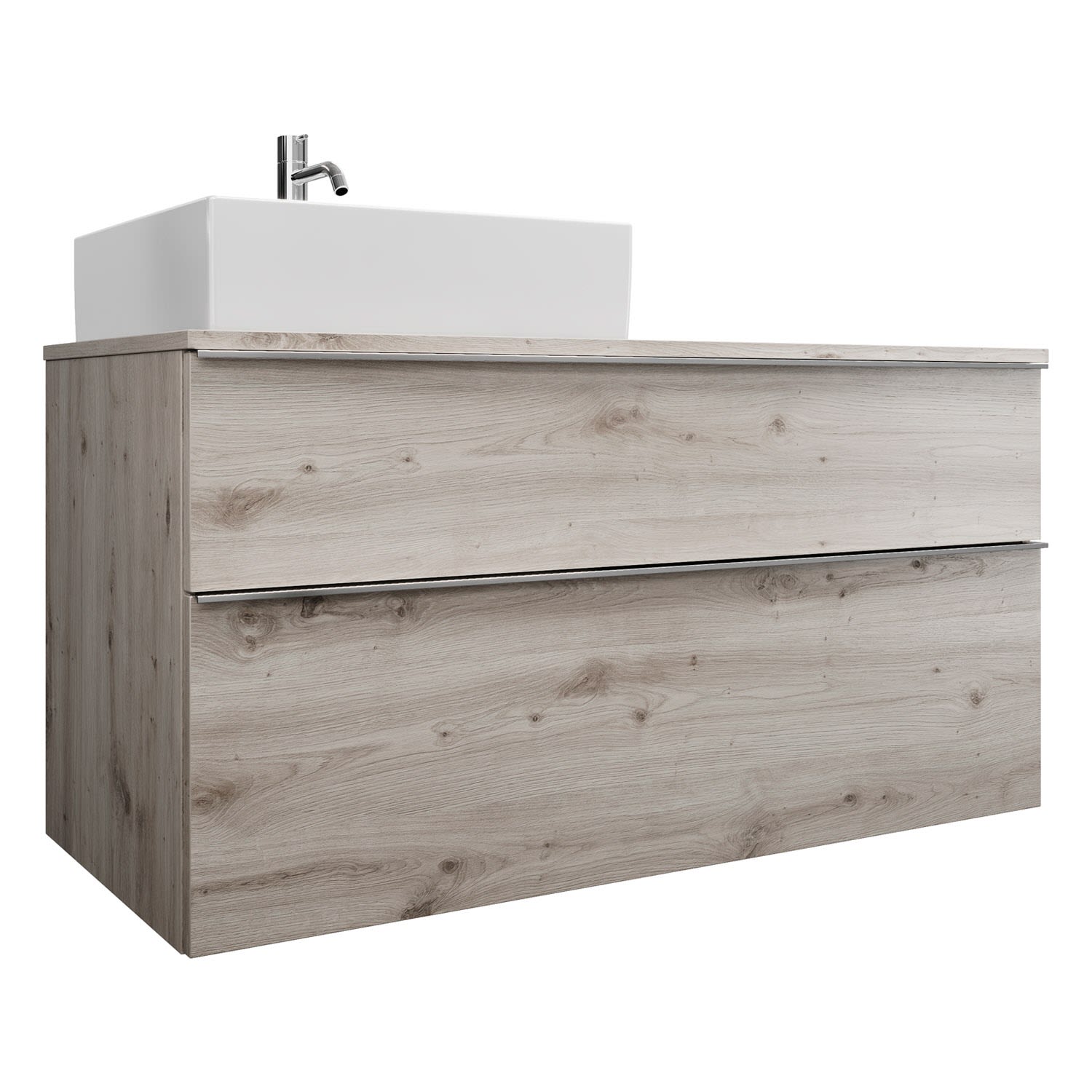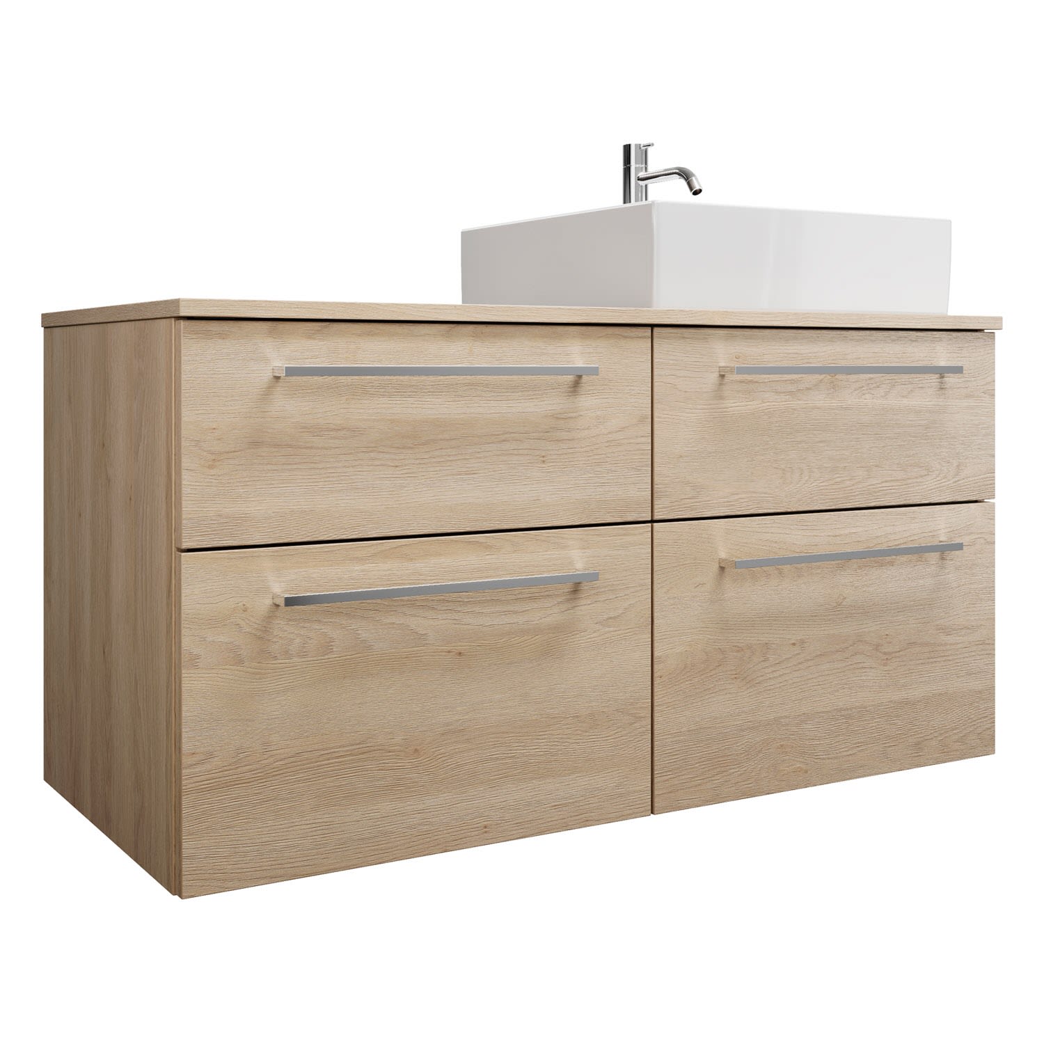 burgbad Eqio Waschtischkombination mit Keramik-Aufsatzwaschtisch 120 cm, links, mit Stangengriff G0234, Badmöbel,