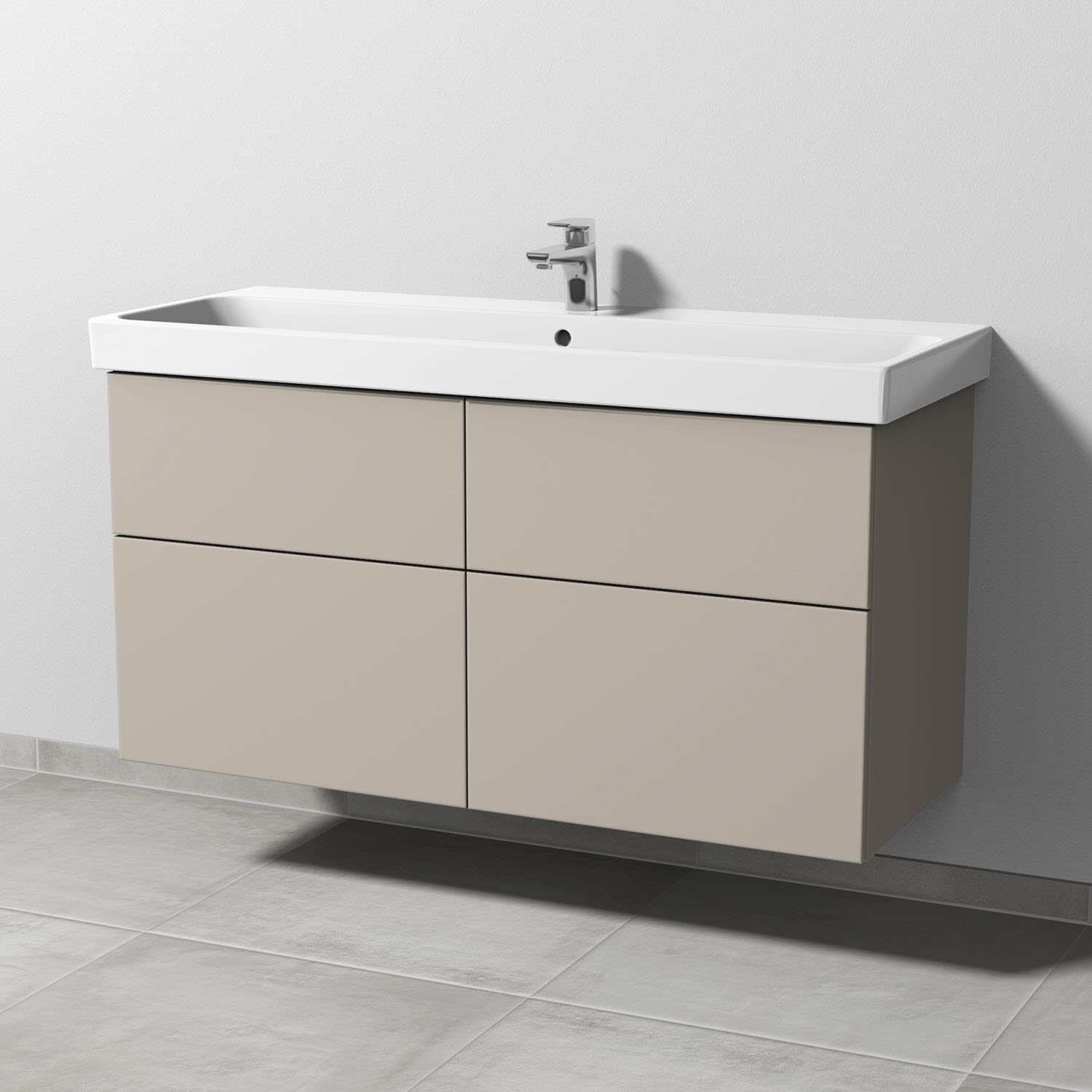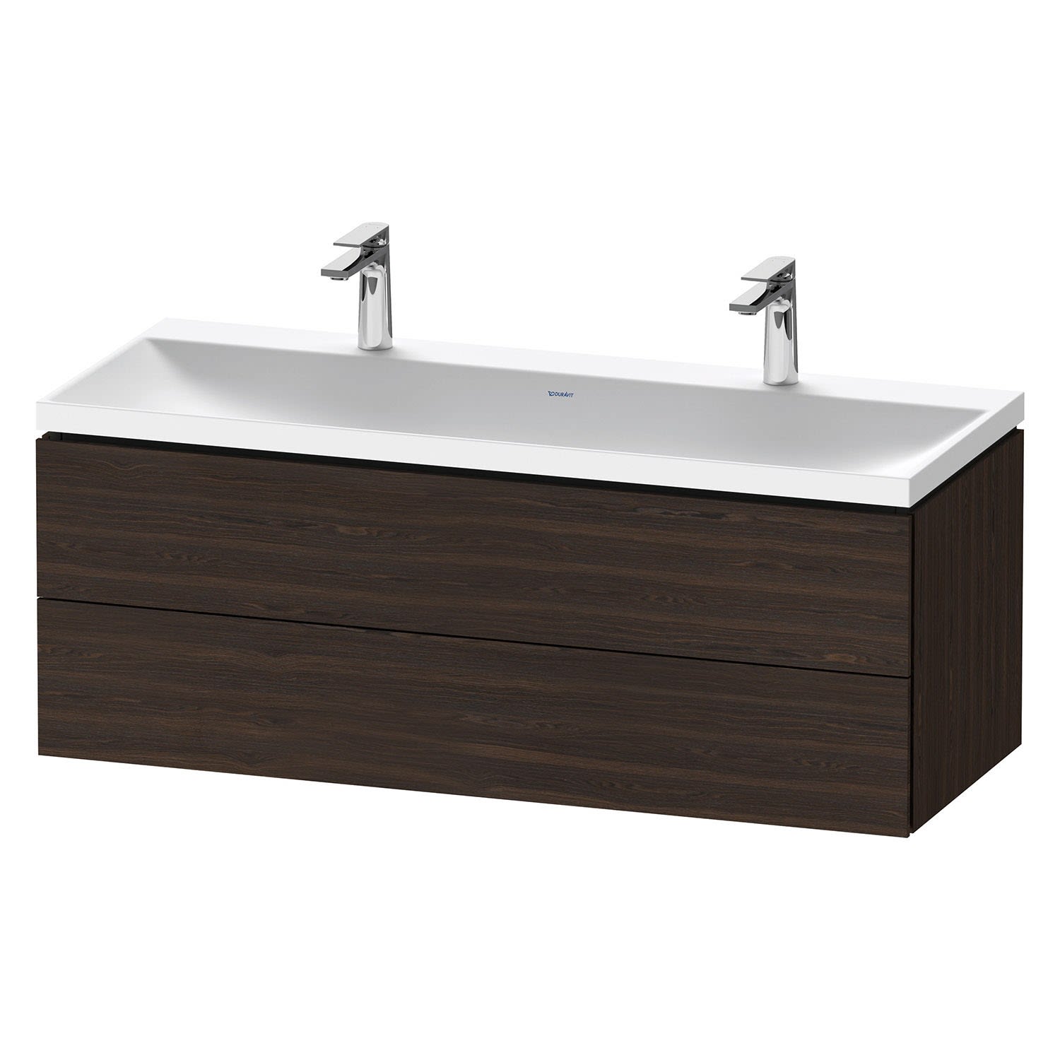 Duravit L-Cube c-shaped Möbelset mit Waschtisch mit 2x 1 Hahnloch und Unterbau mit 2 Auszüge, 120 x 48 cm, Badmöbel,