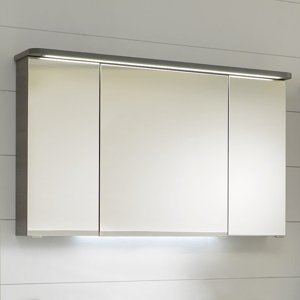 burgbad Junit Spiegelschrank mit LED-Aufsatzleuchte und LED-Waschtischbeleuchtung 120 cm Rechts SPIZ120-R-F3148-PN380, Badmöbel, verspiegelt