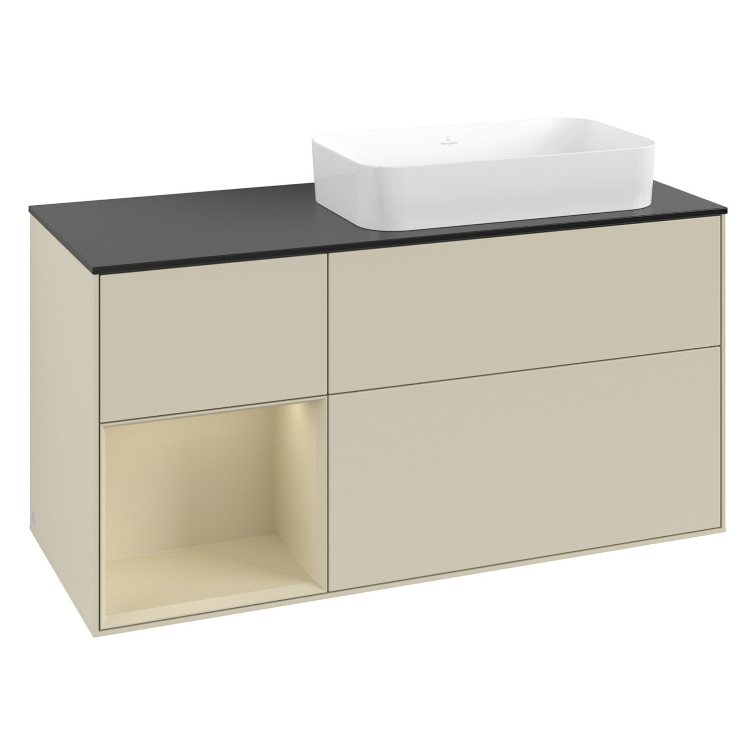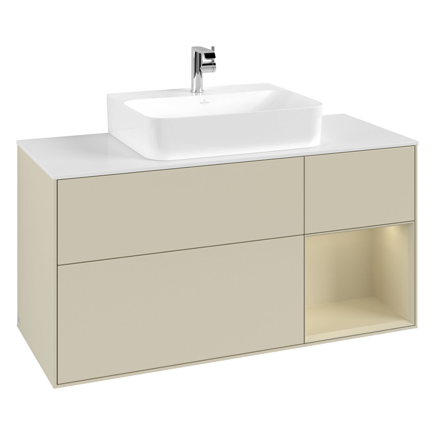Villeroy & Boch Finion Waschtischunterschrank 120 cm mit Regalelement rechts, Abdeckplatte F171GFGF, Badmöbel,