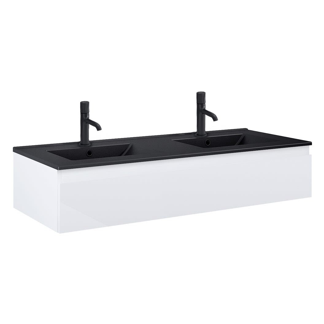 Waschtisch mit Unterschrank ONE 120 cm 4 Schubladen Weiß Hochglanz hängend Badmöbel Badezimmer