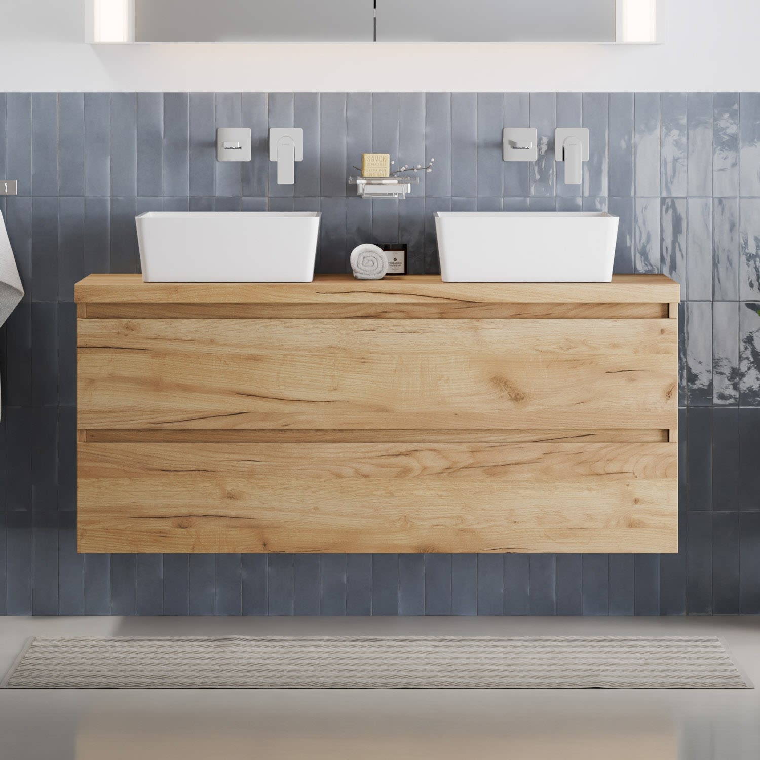 Badmöbel-Set mit Doppelwaschbecken & Unterschrank 60 cm , Arbeitsplatte 120 cm, Iconic White I BM241 - Weiß/Santa Fe Vintage